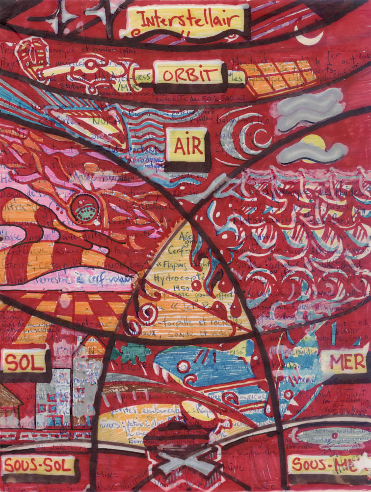 | Titre : | Exemple de décoration artisanale des fonds et de leurs intersections en trois cercles concentriques SOL-AIR-MER, cela en leurs contextes thématiques, ainsi la surprise étant qu'autres intersections peuvent s'inventer au-delà, tels que sous-terre, sous-mer, haute altitude ainsi que spatial interplanétaire jusqu'à interstellaire, 2011. | |