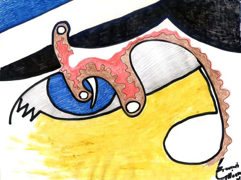 Effectivement ailleurs à nouveau se trouve l'équipement vestimentaire qui peut présenter une boucle ou encore à-même sa terminaison en un design de la forme figurative d'un gland, tout comme le bout d'une languette, le bout d'une sangle attachée, le bout d'une ceinture ou encore d'une bretelle, les lanières de franges de vêtement pourraient rappeler une multitude de pénis au repos, une rayure de textile imprimé, un bijou antique de collier traditionnel chez une peuplade d'Amérique latine tout comme Aztèque, Inca, Maya, ou encore Arae Canos (orthographe à vérifier), observable au musée, collier à-même où pendouillent des ficelles placées en rangés parallèle ornementées de des billes dénombrées de par le même nombre de membres de la même lignée par ficelles, tout comme un représentation archaïque d'un arbre généalogique, (...)